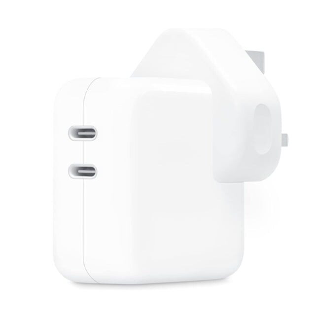 The 35W Dual USB‑C Port Power Adapter allows you to charge two devices at the same time, whether you’re at home, in the office, or on the go. Apple recommends using it with MacBook Air. You can also use it with iPhone, iPad, Apple Watch, and AirPods.